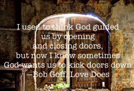 Every track season, I choose a book to read while we are traveling. We have lots of free time on busses, in airports, on planes, and sitting at the continental breakfast in hotels. This past indoor season, I chose Love Does by Bob Goff. My sister got me the book for Christmas and she was so giddy when she gave it to me. “Rach, you are going to LOVE it!!!” She was actually jumping up and down when I opened it. And she was right. The book was amazing. And in one of my favorite chapters of the book, Bob tells a story about his life that reminds me a little bit of this giant door that I have to open every day. Bob is talking about the way that he got into law school (which was pretty incredible), and he says, “I used to think that God guided us by opening and closing doors, but now I know that God wants us to kick some doors down,” (2012, Goff, p. 38). Kick some doors down.